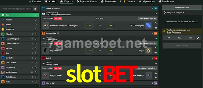 O slotbet oferece uma grande seleção de opções de apostas em e-sports com probabilidades competitivas